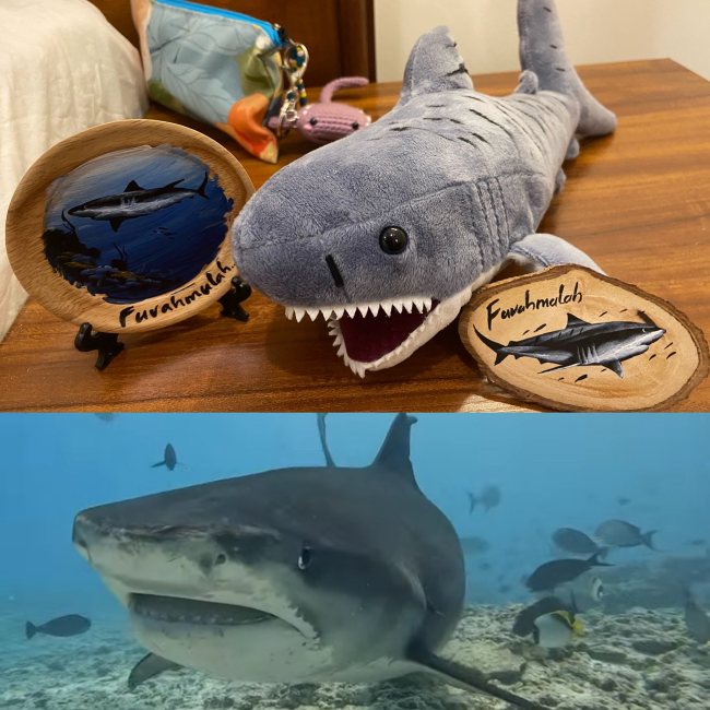 這是我去Maldives 的虎鯊島Fuvahmulah潛水帶回來的紀念品,這個島是印度洋上最耀眼的珍珠項鏈墜飾,因長年有虎鯊駐足,所以有虎鯊島的美譽,潛水人都嚮往之 左右兩邊木制品是由當地的藝術家親自手繪,島上居民不多,交通也並不是那麼便利,所以保留了純樸的味道,觀光客不多,所以紀念品店也是少之又少,跟潛伴們徒步尋店,穿梭在巷弄中聊天嬉鬧,認真的參訪居民住家的風景,增加了旅行的樂趣,帶回這可愛的紀念品當做第一次近距離及拍攝虎鯊所留下的紀念